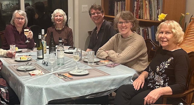 Helen and John Peppler hosted the February dinner with a theme of “ A for Apple”. All the menu items had apples in them from the Apple inspired appetizer board, the Apple Salad, the Maple Brined Pork Roast with Apple to the Apple Crème Brûlée and everything in between.